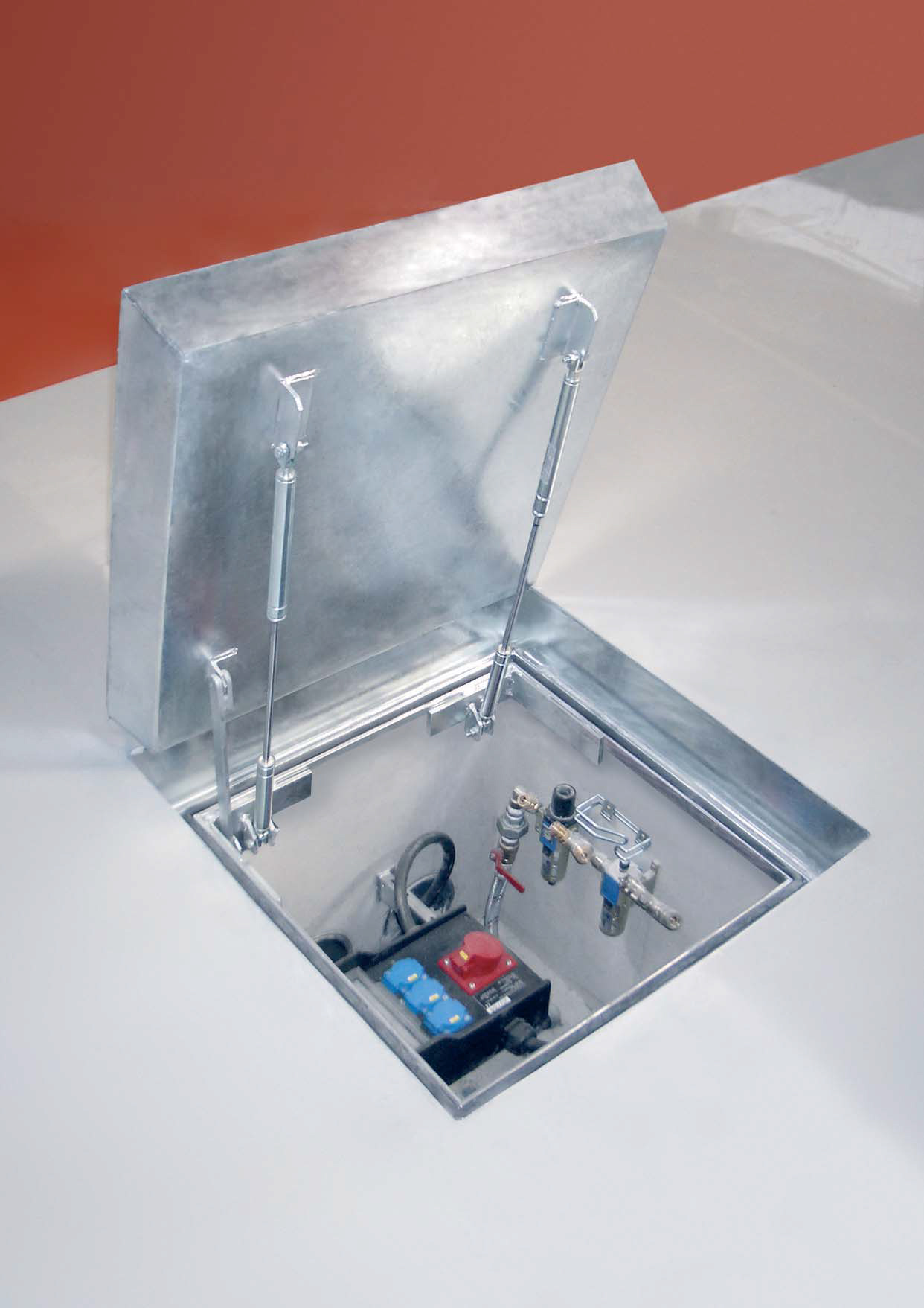 - Indicaţie importantă: arcurile cu gaz nu sunt montate din motive de transport. Acestea se montează cu capacul deschis, după deplasarea capacului înşurubat şi după umplerea vanei (betonul trebuie să fie întărit), în conformitate cu instrucţiunea noastră de montare.