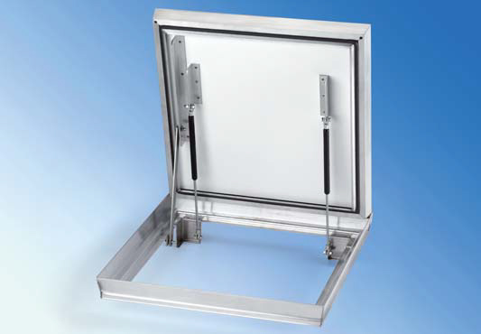Capac tip cuva cu BALAMA, ARCURI CU GAZ si PLACA ALU-COMPOZIT, cu posibilitate de placare, etans aer si in mare masura la apa, ALUMINIU.