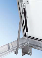 - Material: ramă din profile extrudate din aluminiu. Vană din profile extrudate din aluminiu lipite de placa tip fagure cu aluminiu compozit (acoperit cu vopsea albă). Îmbinare cu şuruburi din oţel inoxidabil. Garnitură EPDM. Arcuri cu gaz de înaltă calitate.