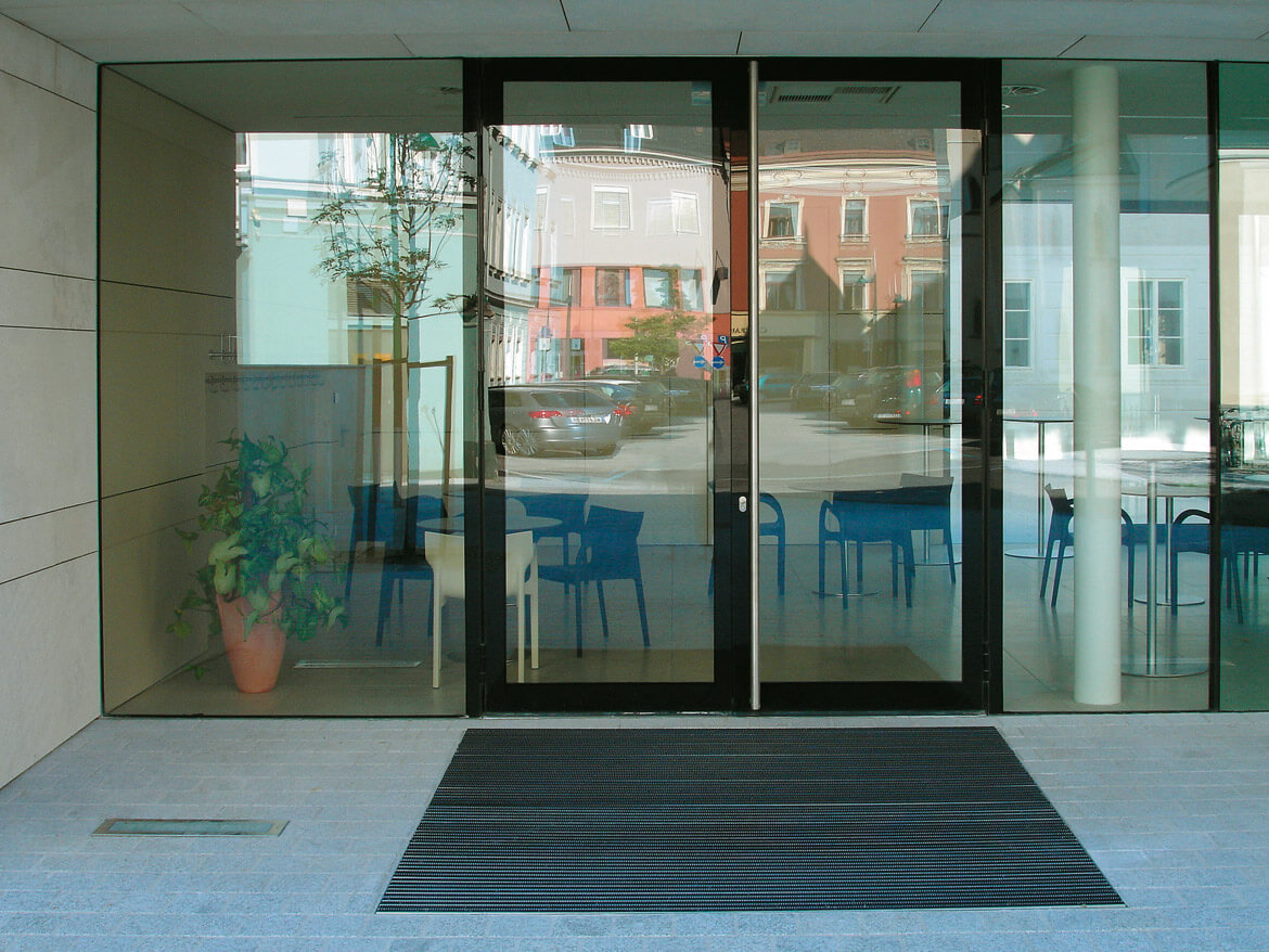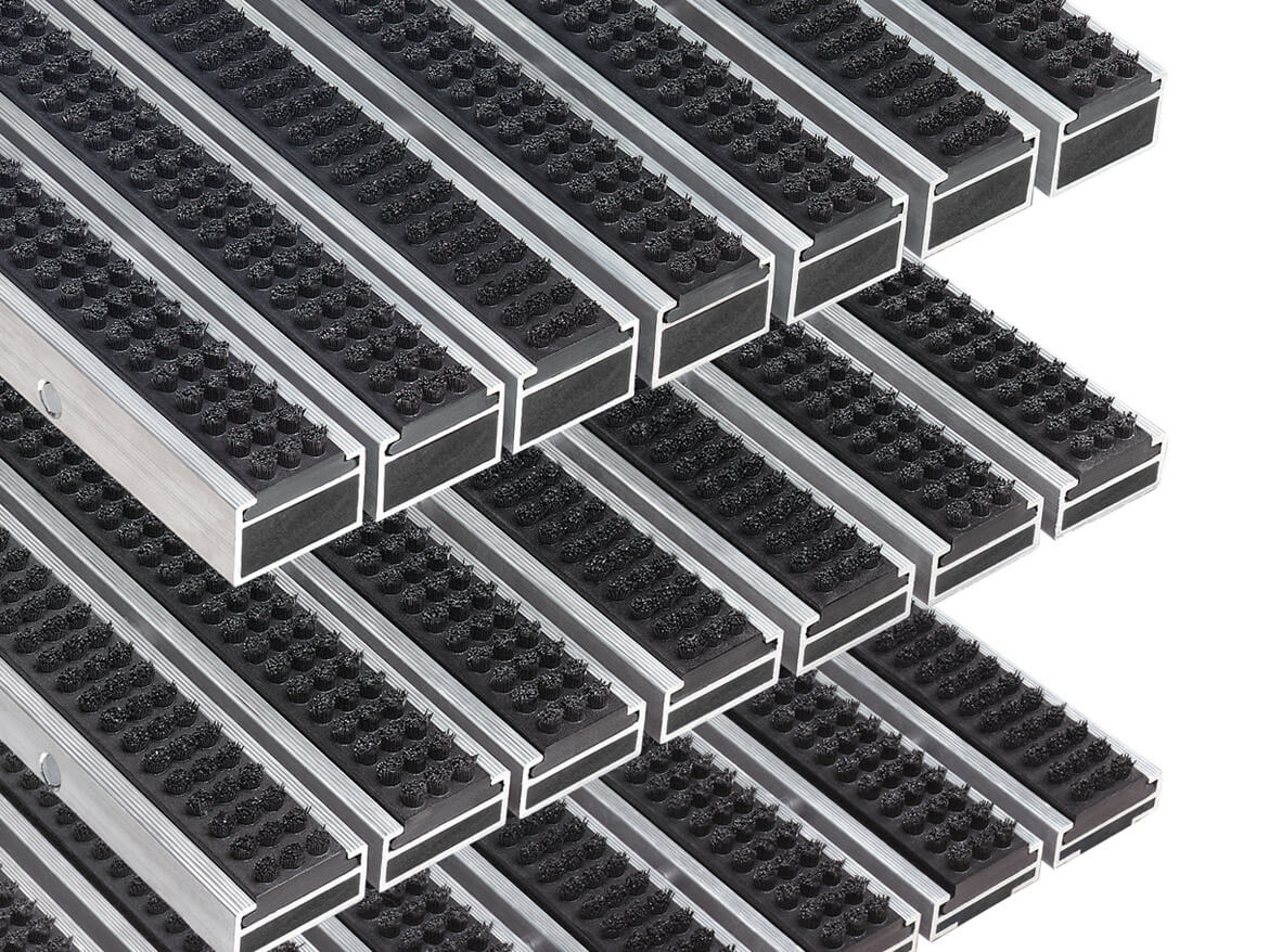 Stergator de intrare HAGOMAT seria Mondial 24. Profil din aluminiu solid cu bara din plastic dur integrat umplut cu 3 randuri de perii fabricate din poliamida 6.6. Disponibil pe 3 inaltimi: 12 mm, 17 mm, 24 mm. Capacitate superioara de colectare a murdariei, rulabila si usor de curatat, curatarea se face foarte usor, cu un aspirator. Se aspira suprafata covorului, se ruleaza covorul si se aspira si murdaria de sub covor (ideal zilnic). Antiderapant de la benzile de cauciuc de pe partea inferioara. Recomandat pentru: intrari in cladiri de birouri, magazine, hoteluri, scoli, complexe rezidentiale, etc.