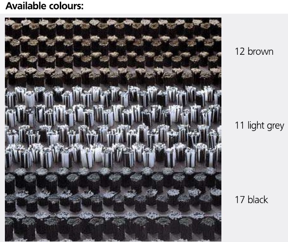 Stergator de intrare HAGOMAT seria Nova 24. Profil din plastic cu perii fabricate din fibre poliamidice 6.6 de inalta calitate. Capacitate superioara de colectare a murdariei, curatarea se face foarte usor, cu un aspirator. Se aspira suprafata si suprafata de baza (ideal zilnic). Pentru murdarie extrema, folositi furtunul sub presiune (ex.curatator cu jet de apa de inalta presiune). Recomandat pentru: intrari moderne, cum ar fi cladiri de birouri, magazine, hoteluri, scoli, complexe rezidentiale, etc.