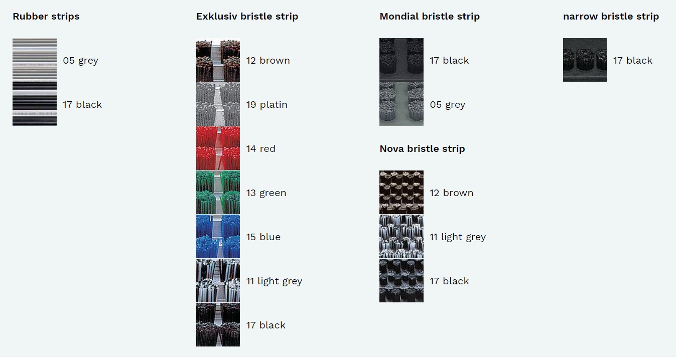 Stergator de intrare HAGOMAT seria Combistrip Brush. Profil din aluminiu cu bare laterale canelate. Benzi de cauciuc canelate cu actiune superioara de razvuire. Disponibil pe 3 inaltimi: 12 mm, 17 mm, 24 mm. Capacitate superioara de colectare a murdariei, ideal pentru curatare grosiera. Uscare rapida, antialunecare. Pur si simplu aspirati suprafata si suprafata de baza (ideal zilnic). Pentru murdarie extrema, folositi furtunul sub presiune (ex.curatator cu jet de apa de inalta presiune). Recomandat pentru: intrari moderne, gradinite, scoli, case de pensionare, birouri, complexe rezidentiale, etc.